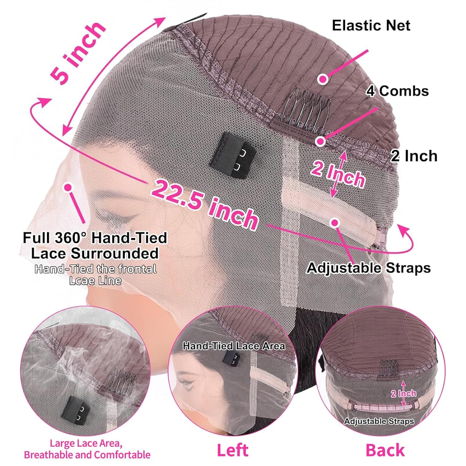 - 360 HD Lace Wig Cap Size: Adjustable Hidden Strap Wig Size(21.5-22.5 Inch) for Most People,Glueless Human Hair Lace Front Wigs With 3 Combs And 2 Adjustable Straps,Friendly for the Beginner Install.You Will Love It.