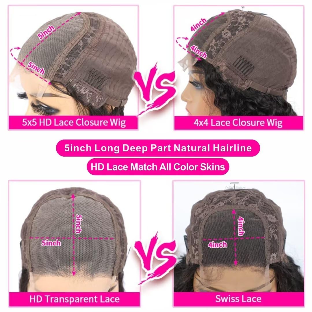 - 3、5x5 HD Lace Closure Wigs Features : Breathable, Comfortable, Soft, Invisible. Wig Cap Size 22.5". Medium Cap Size with Adjustable Straps, 4 Combs Inside, Fixed Position, Easy to Adjust &Fit, Wear Comfortable. Careful Maintenance Makes the Cycle Longer