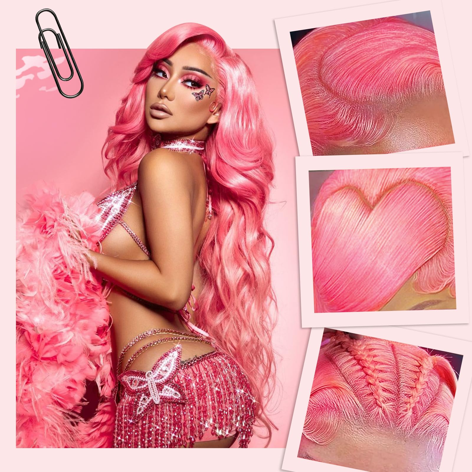 - Pink Body Wave Lace Front Wigs Human Hair: Regardless of whether party,anniversary,wedding,work,banquet,outdoor activities, performances, etc.hot pink wig all of them will make you the brightest presence in the crowd