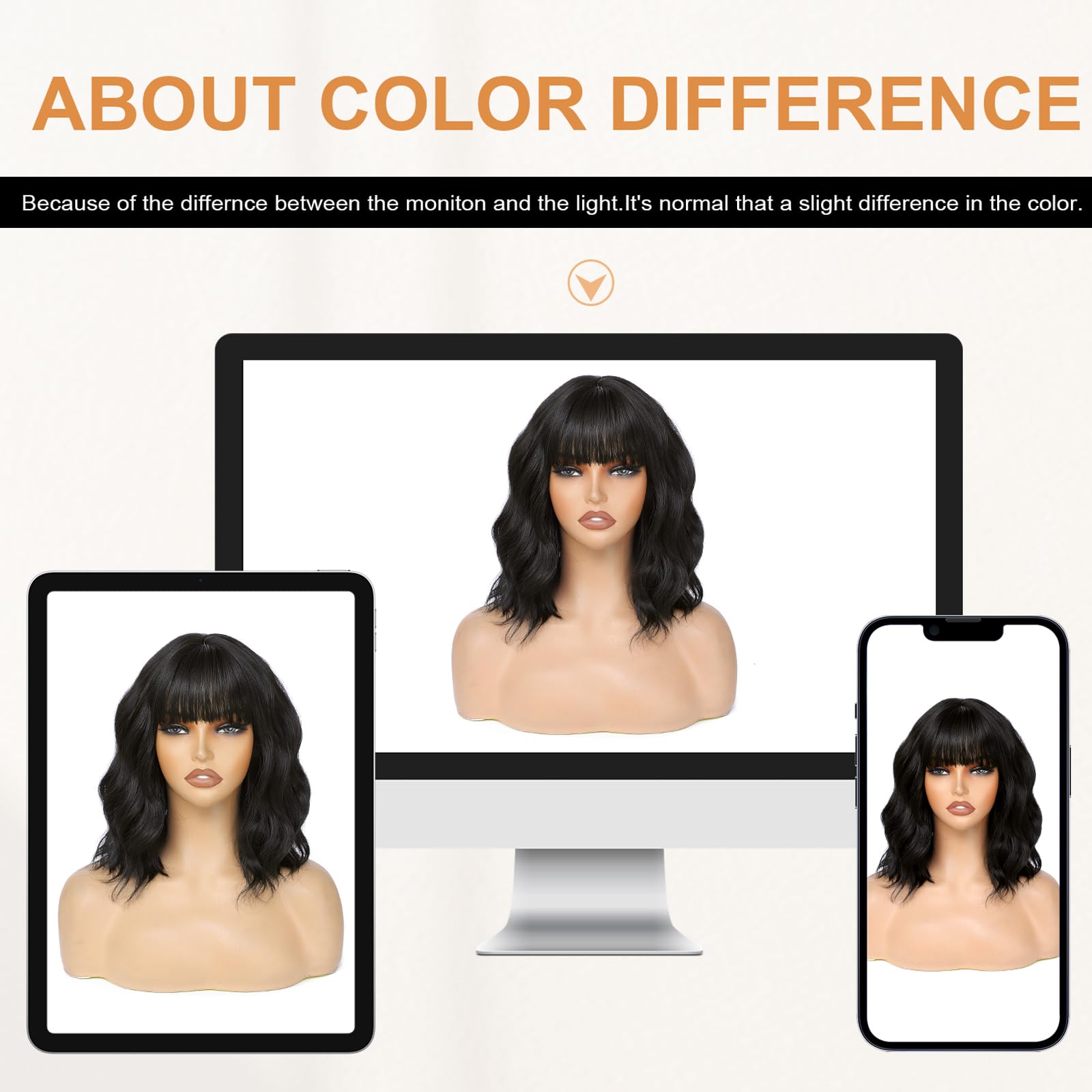 - 【Unique Bob Wavy Wig Style】:Short Bob Wigs with Bangs, looks more natural and fluffy,Medium Length Loose Wavy Wigs.Hair Bang:5inch,can be cut according to your face(There may slightly color differences due to different display& light)