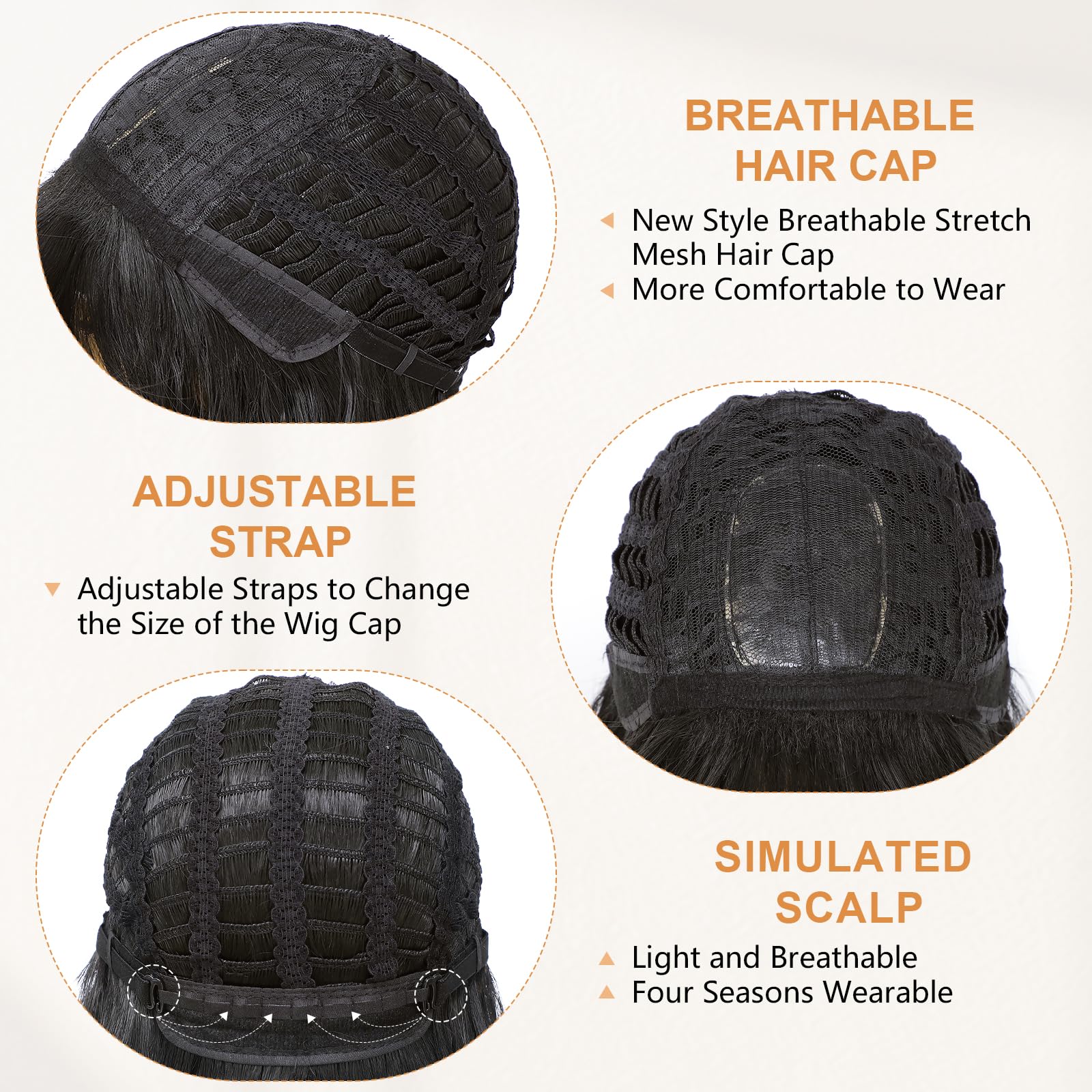 - 【Unique Bob Wavy Wig Style】:Short Bob Wigs with Bangs, looks more natural and fluffy,Medium Length Loose Wavy Wigs.Hair Bang:5inch,can be cut according to your face.