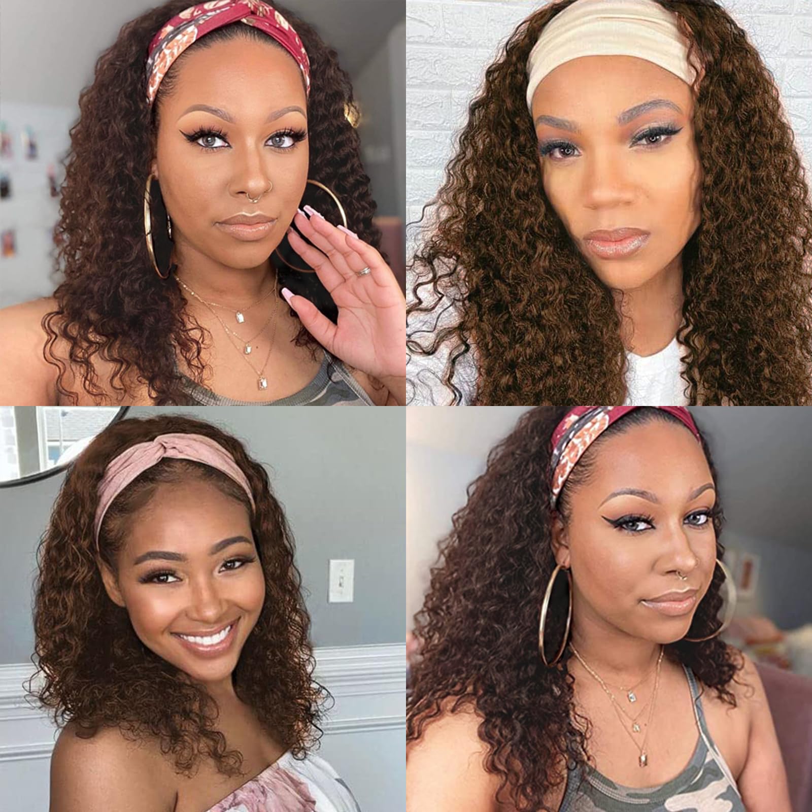 - Package Included: 1 Headband Wig + 1 Wig Cap + 1 Pair of Eyelashes + 1 Headband ( random color), allowing you to enjoy the convenience and versatility of this high-quality deep wave headband wig