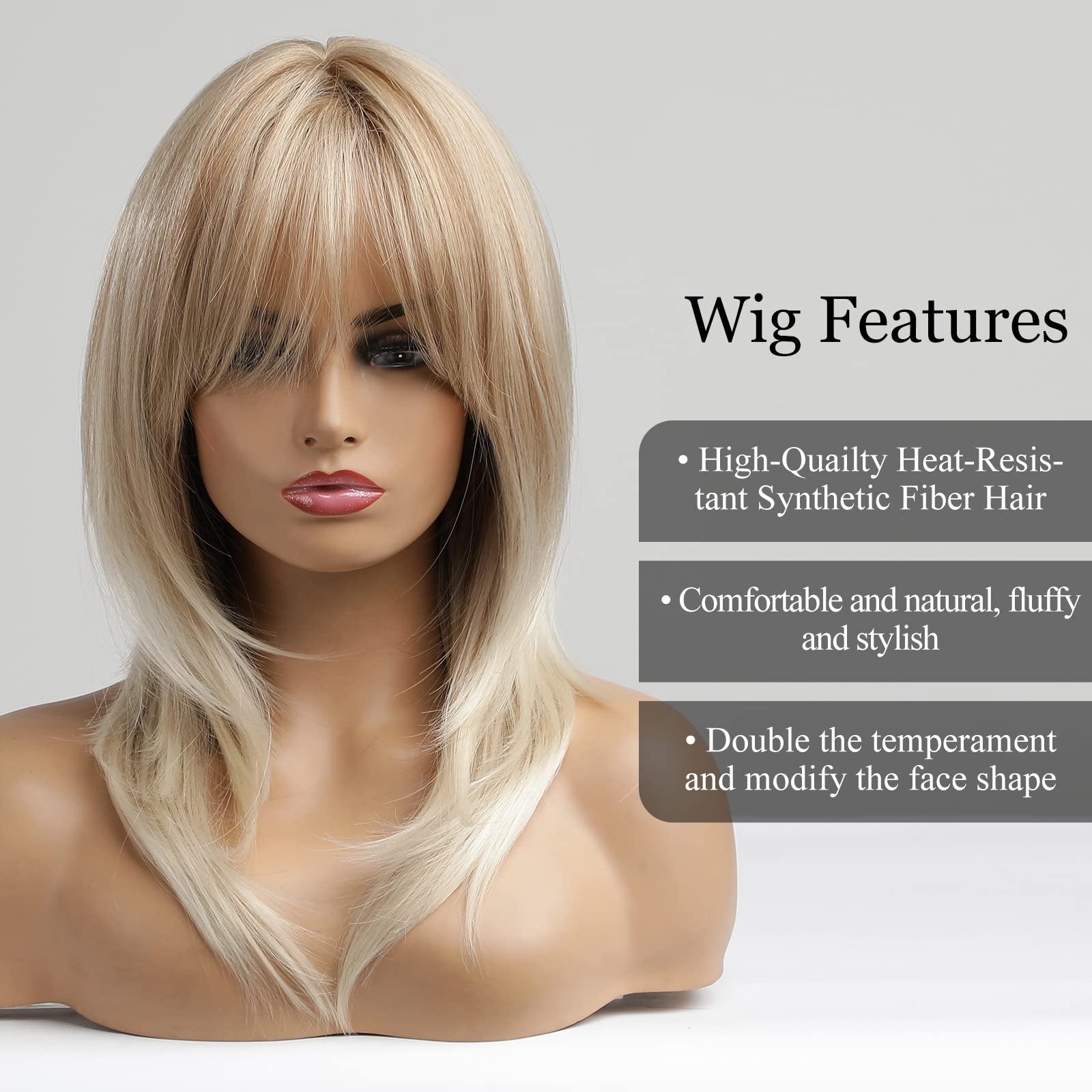 Alanhair Blonde Wigs for Women Shoulder-Length wig with Bangs,HAIRCUBE Synthetic Hair Layered Wigs Heat Resistant Fibre for Daily Party Use