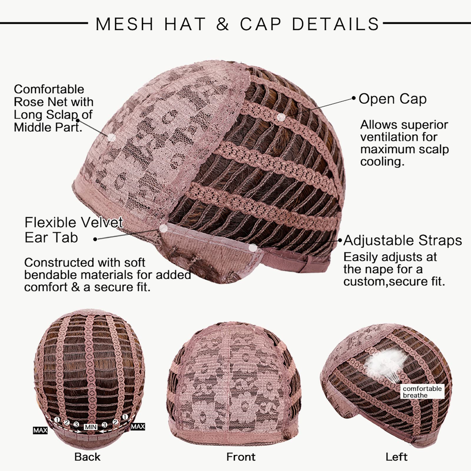 - 【Wig Cap Structure】The hairnet of this wig is of average size, between 21.5 and 22.5 inches. It fits most people's heads. It is comfortable, light and breathable, and does not put pressure on the head.