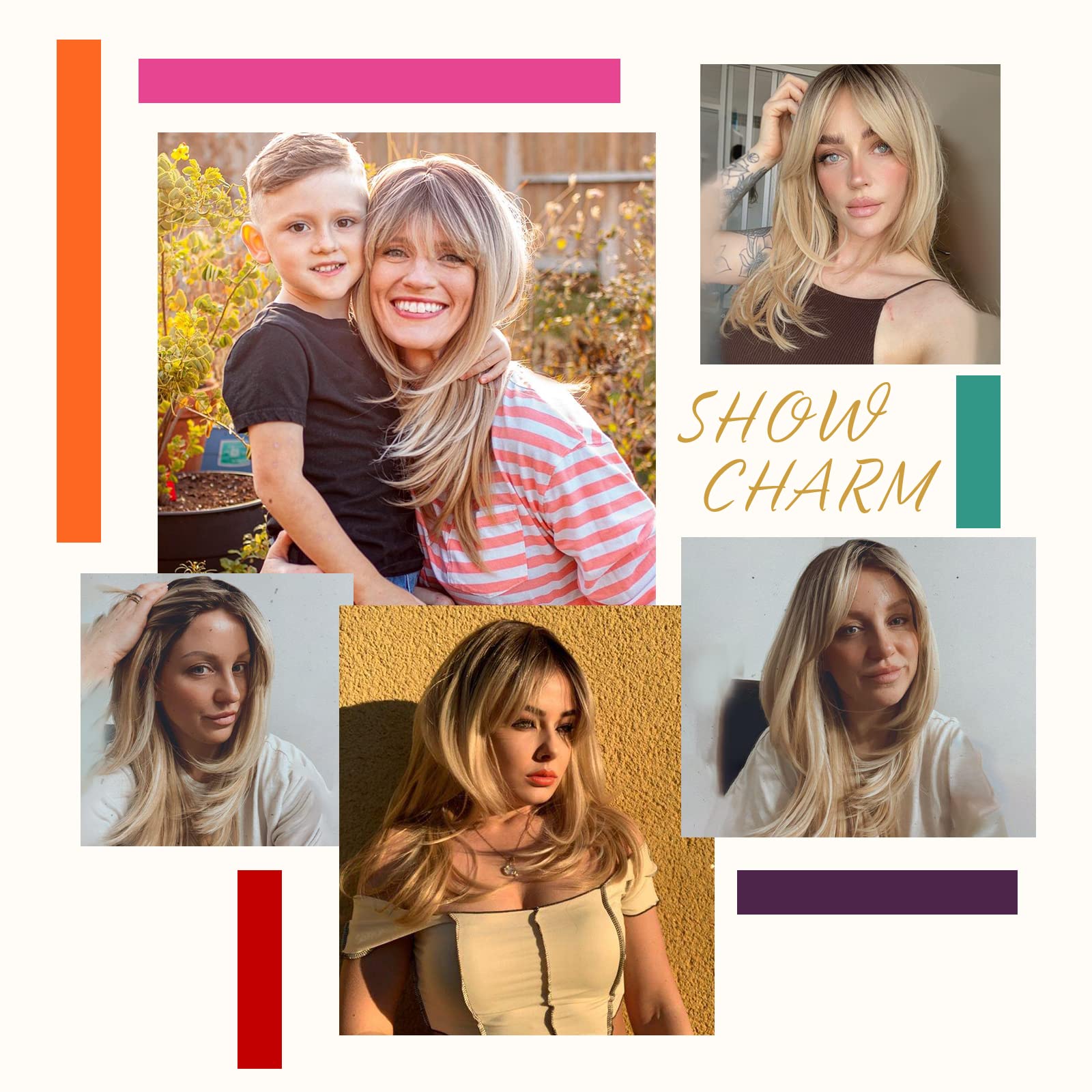 Alanhair Long Ombre Blonde Wigs for Women,HAIRCUBE Layered Synthetic Wig with Bangs Heat Resistant Fiber Daily 24 Inch