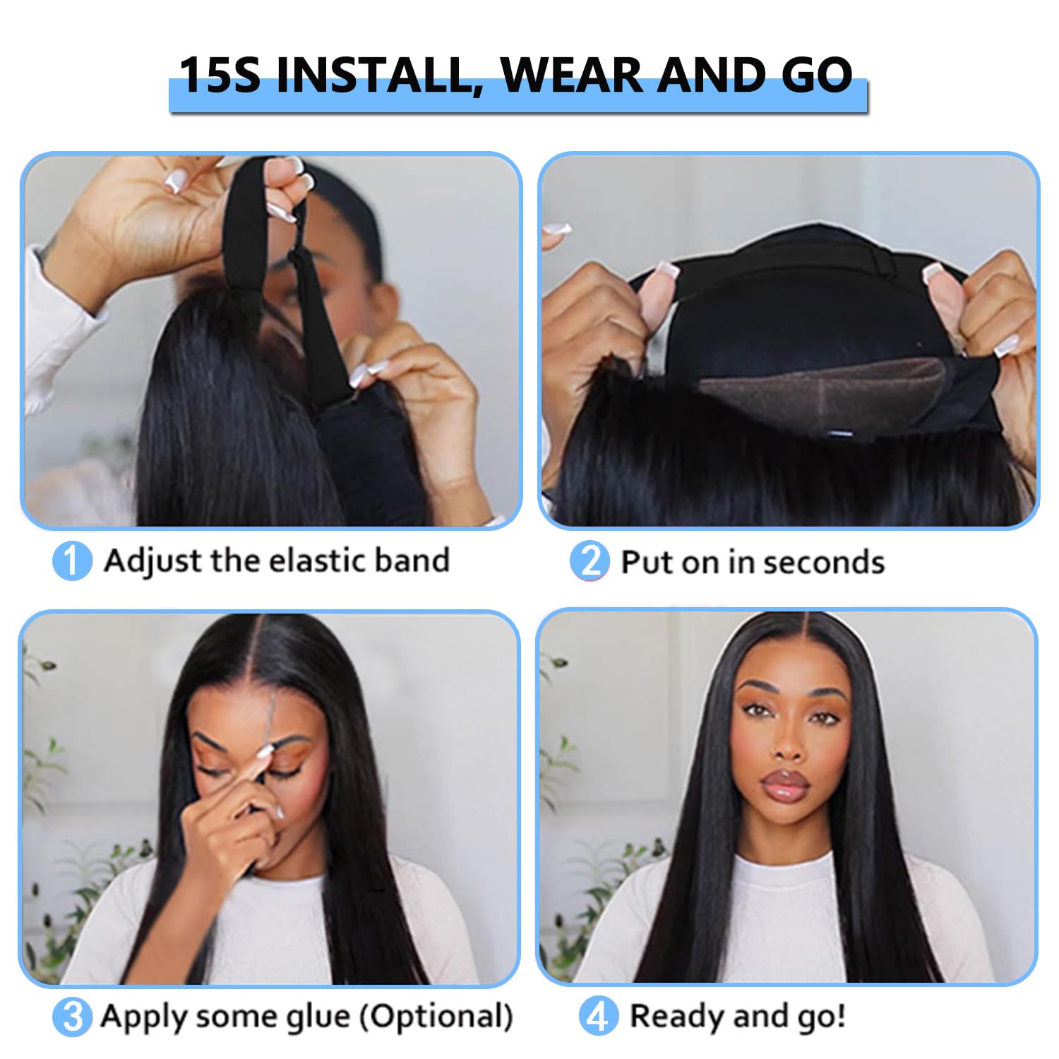 - Save Time & Energy: Can Be Wear Within 15s Without Any Skills, Simpler & Easier To Install, Soft Touch, Shedding Free, Tangle Free. Beginner for Friendly.