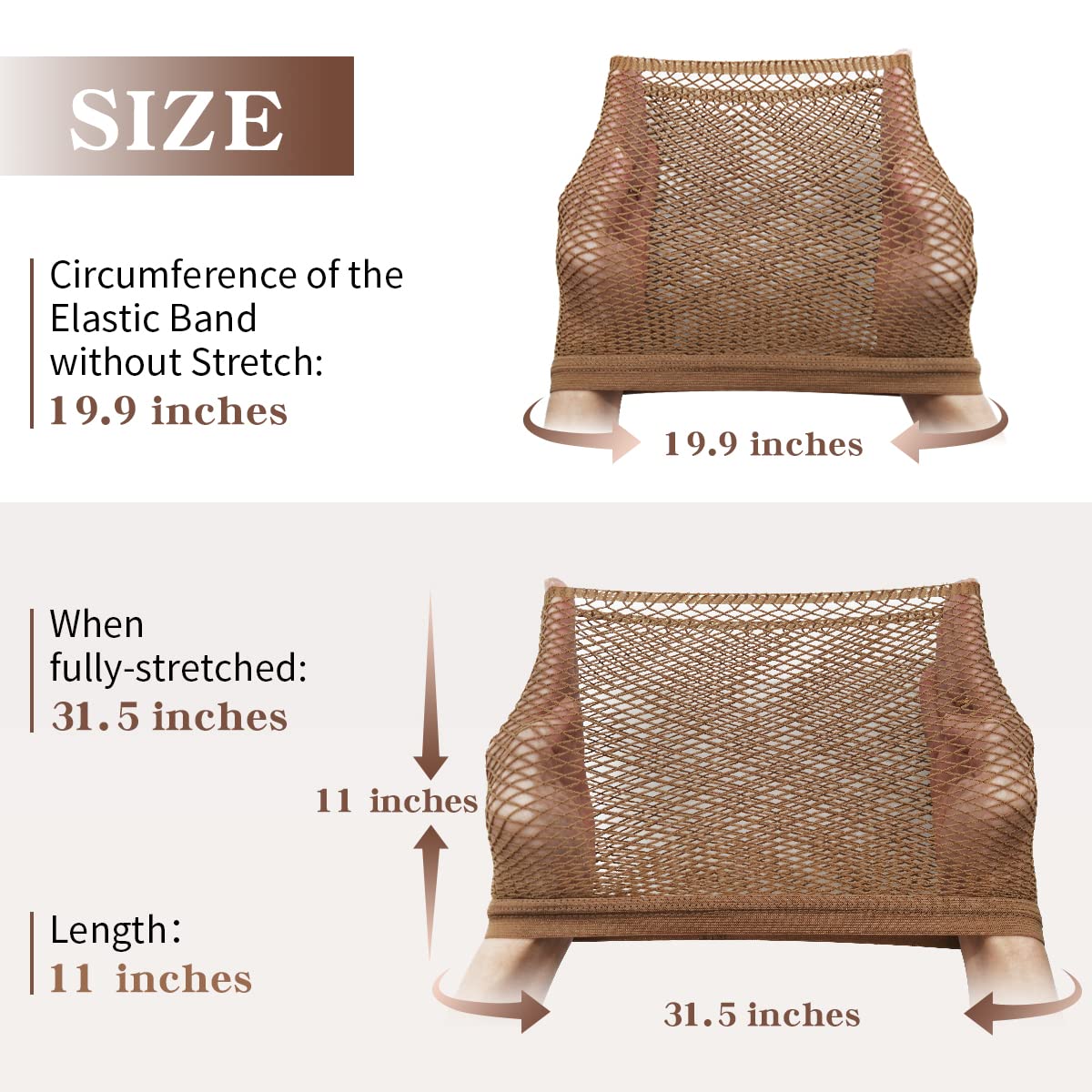 - Due to the excellent elasticity, our wig hair net can fit different head sizes and hair lengths. If it comes loose after use, please hand wash and air dry to restore it to its original shape.
