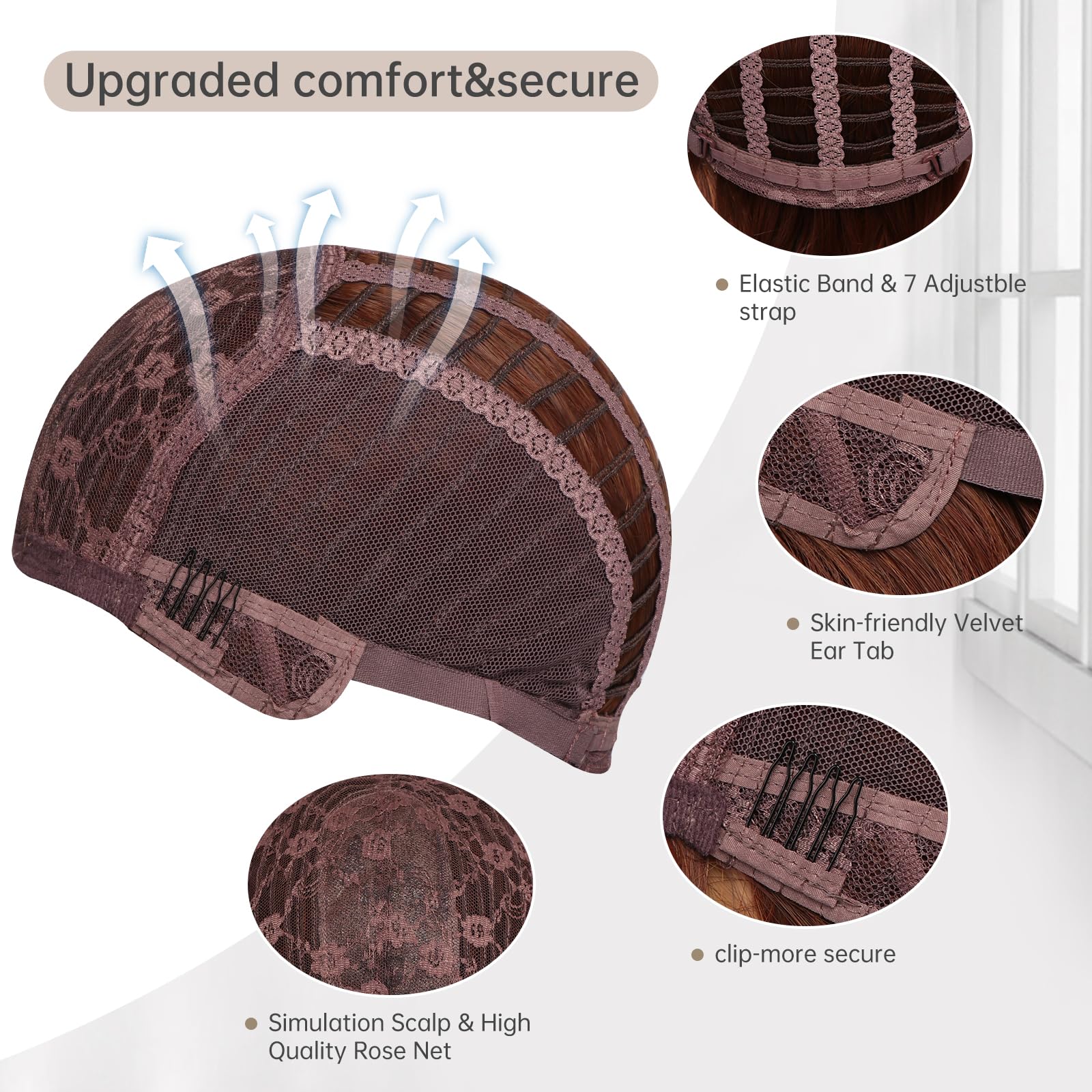 - 【Premium Heat-Resistant Synthetic Fiber】Crafted with high-quality heat-resistant synthetic fibers, this wig with bangs mimics the texture and shine of natural hair.It’s a lightweight, tangle-free, and durable option among good quality wigs, built for long-lasting wear and everyday styling.