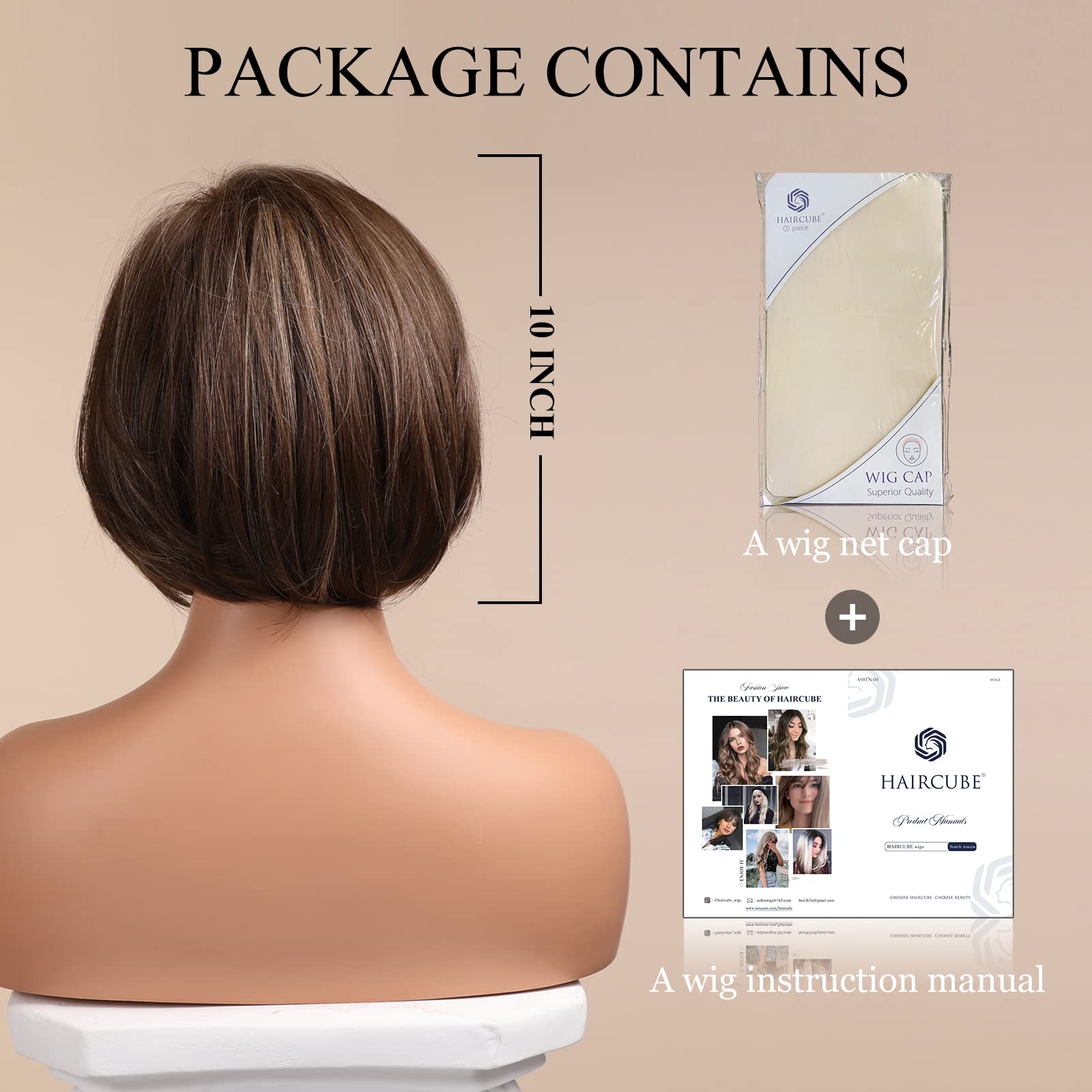 HAIRCUBE Brown Bob Wig Short Hair Wigs for Women Highlight Heat Resistant Fibre Synthetic Wig Natural Looking 10 Inch
