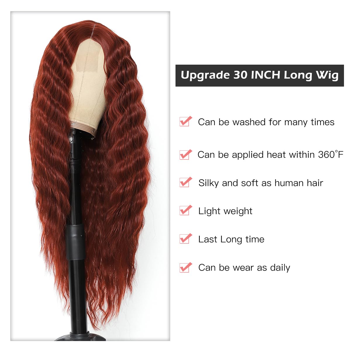 INSTASTYLE 30inch Curly Wig Long Synthetic Wigs for Black Women Ginger Red Deep Wave Synthetic Curly Wig Lace Front with 4" Simulated Scalp Natural Crimps Curls Hair Replacement Wig,350#