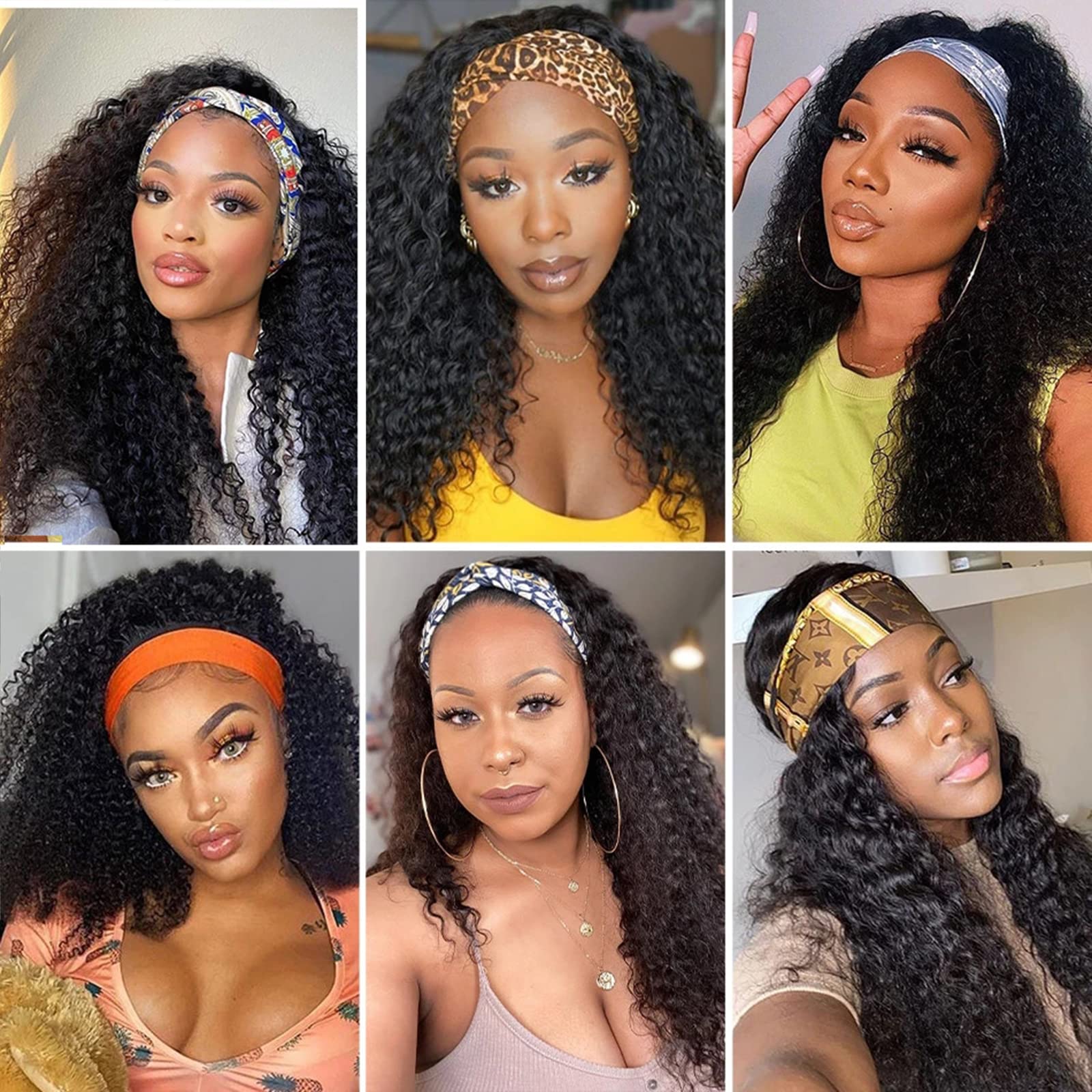 ISEE Headband Wig Human Hair Kinky Curly Human Hair Wigs for Black Women Glueless None Lace Front Wigs 180% Density 16inch
