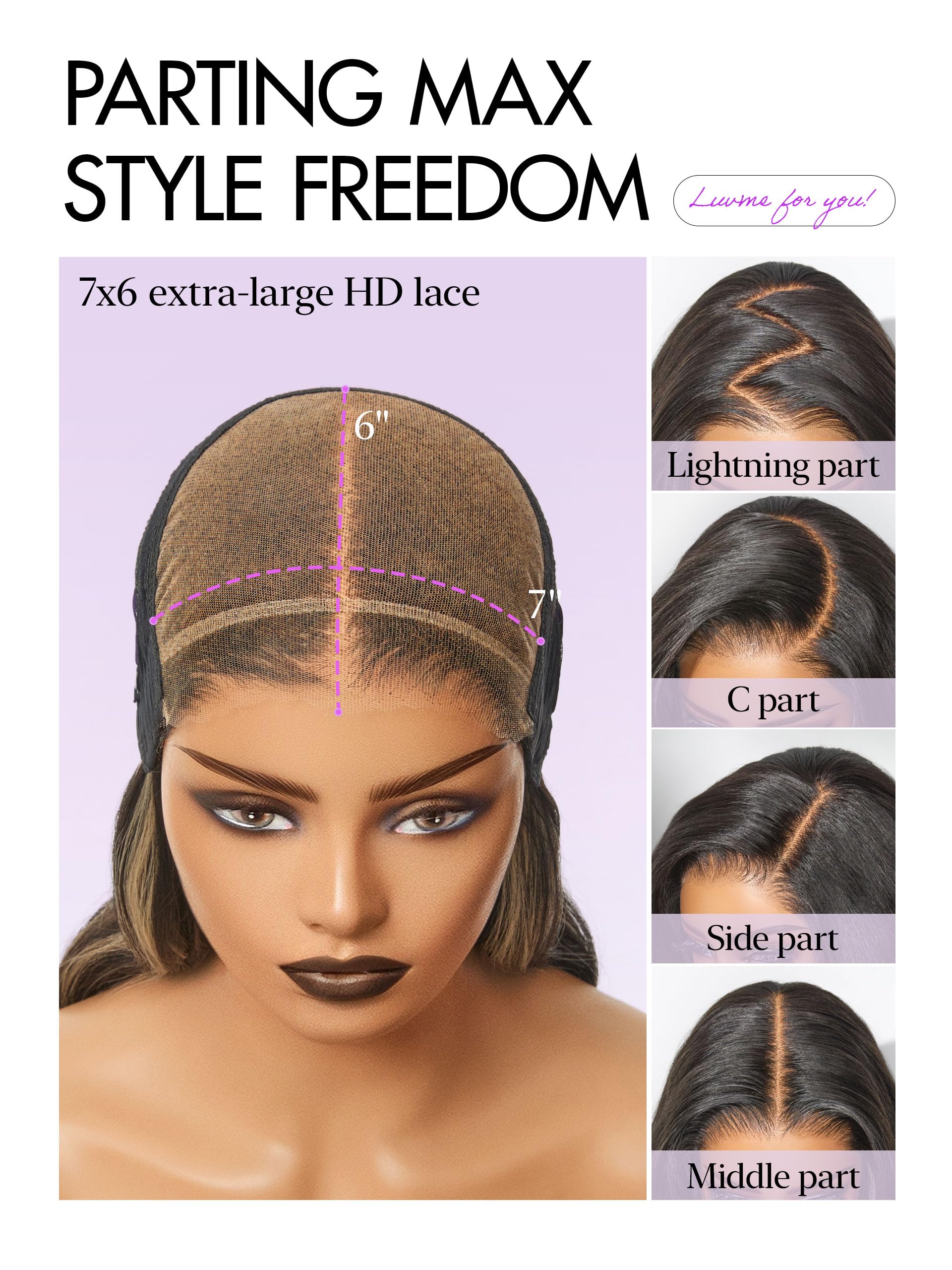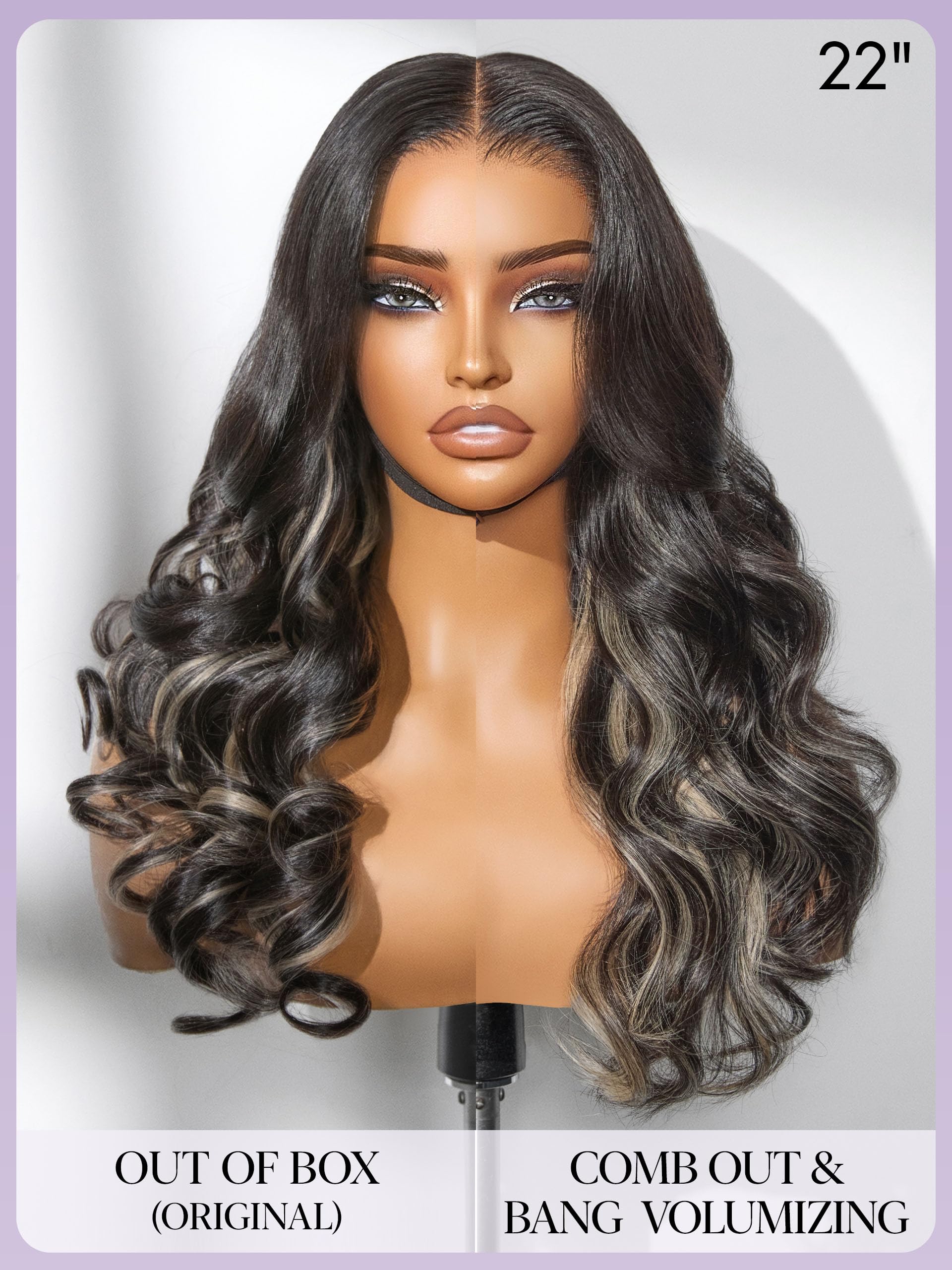 Details: LUVME HAIR 7x6 HD Lace All-Day Comfort Wig 200% Density Hair PartingMax Lace Wigs Mix Blonde Highlight Color Loose Body Wave Lace Front Wigs Human Hair Pre Cut Plucked Lace Frontal Glueless 28 Inches