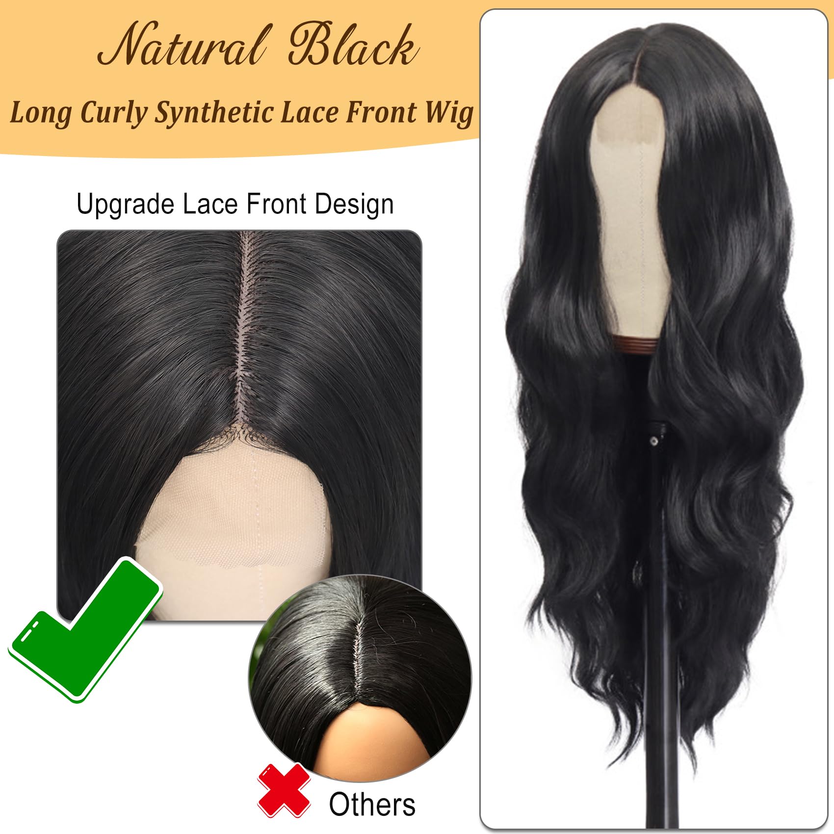 - 【Premium Fiber Tangle-Free】Our long curly wigs for black women made with high-quality heat-resistant synthetic fibers, this long black wig delivers a silky-smooth touch with lasting shape. Stays tangle-free and holds curly wig style even after multiple wears. A trusted pick among long curly synthetic women wigs, lightweight, easy install, easy to manage.