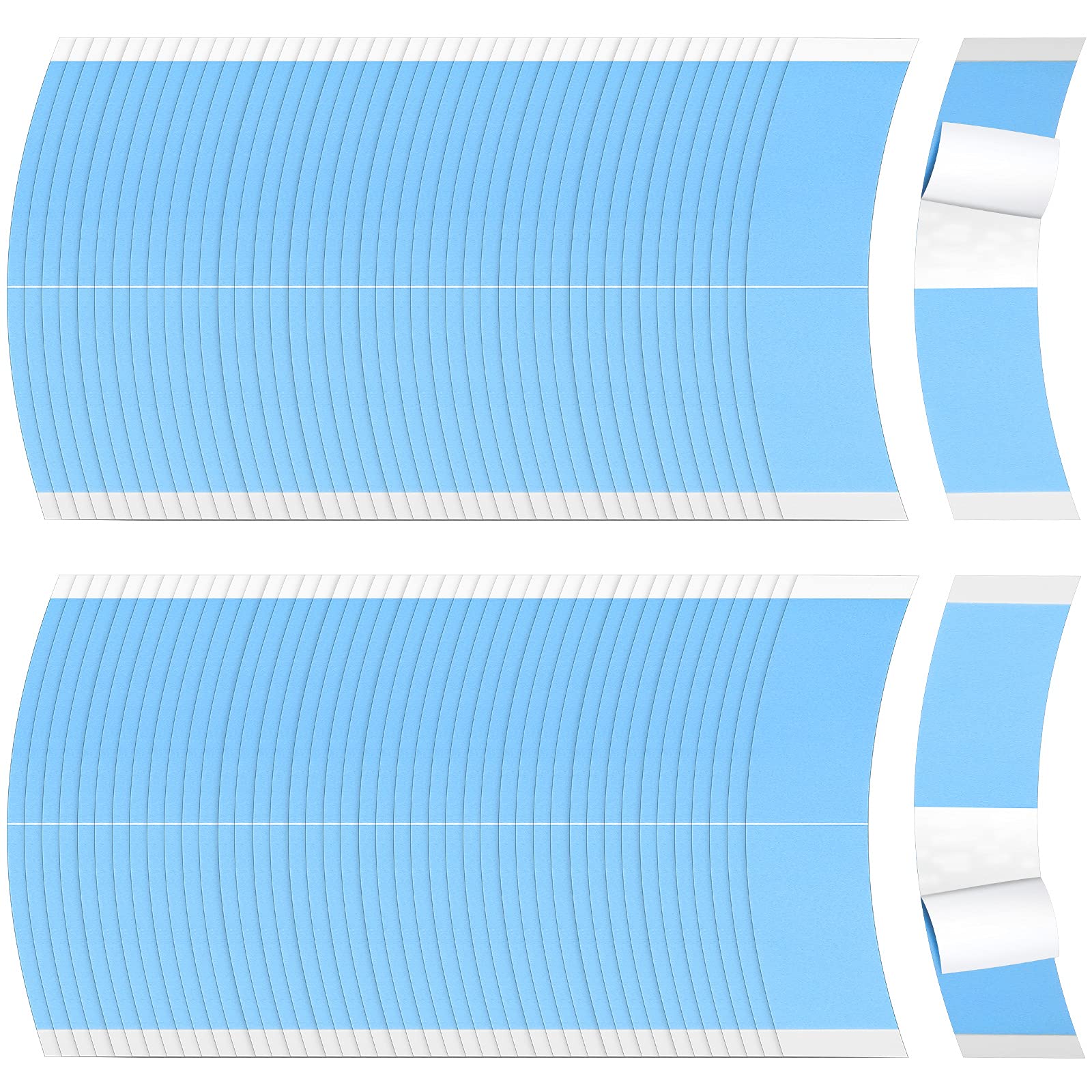Maitys 120 Pieces Lace Front Wig Tape Double Sided Adhesive Waterproof C-Shaped for Long Short No Hair Wigs Toupees Pieces and Extension(Blue)
