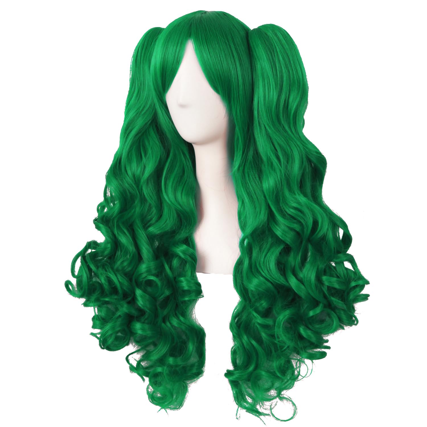 MapofBeauty 28 Inch/70 cm Lolita Long Curly 2 Ponytails Clip on Cosplay Wig (Grass Green)