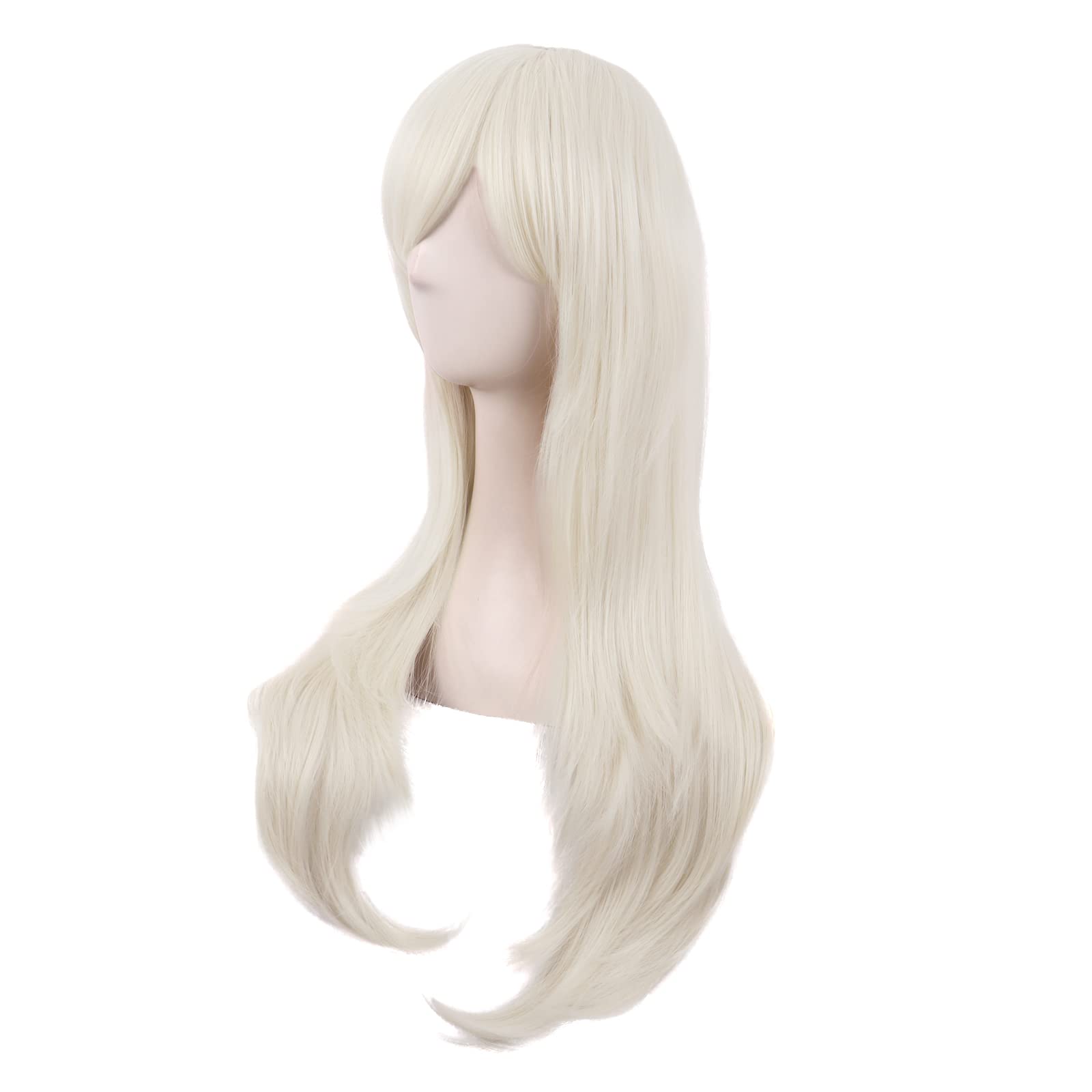 MapofBeauty 28 Inch/70 cm Women Side Bangs Long Curly Hair Cosplay Synthetic Wig (Platinum Blonde)