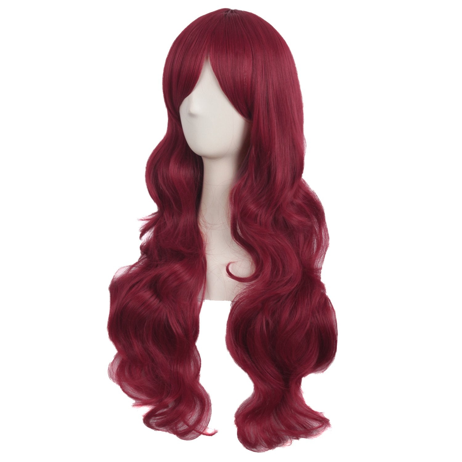 MapofBeauty 28 Inch/70cm Charming Women Side Bangs Long Curly Full Hair Synthetic Wig (Red)