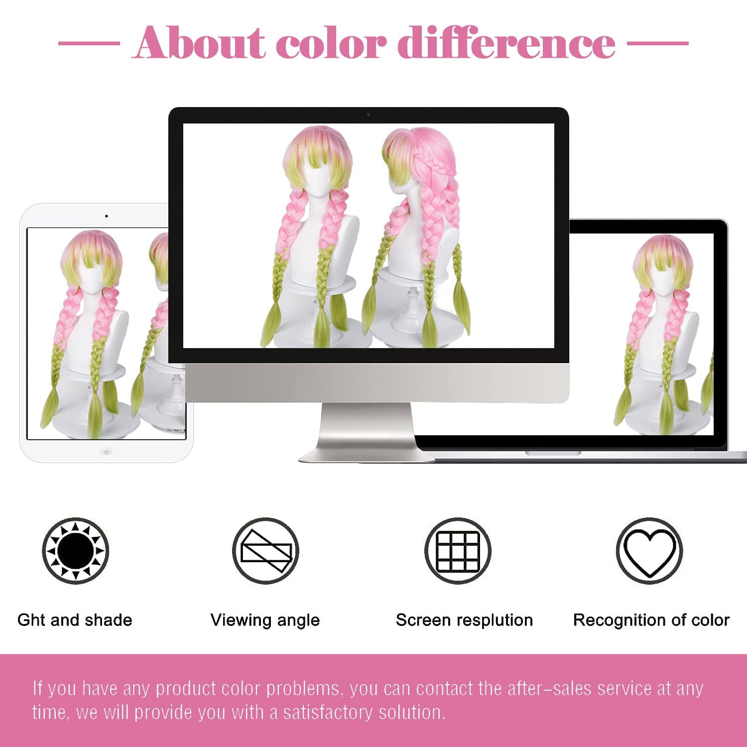 Max Beauty Anime Pink and Green Wig for Mitsuri Cosplay Braided Hair Wig with Pigtails Halloween Party + Cap