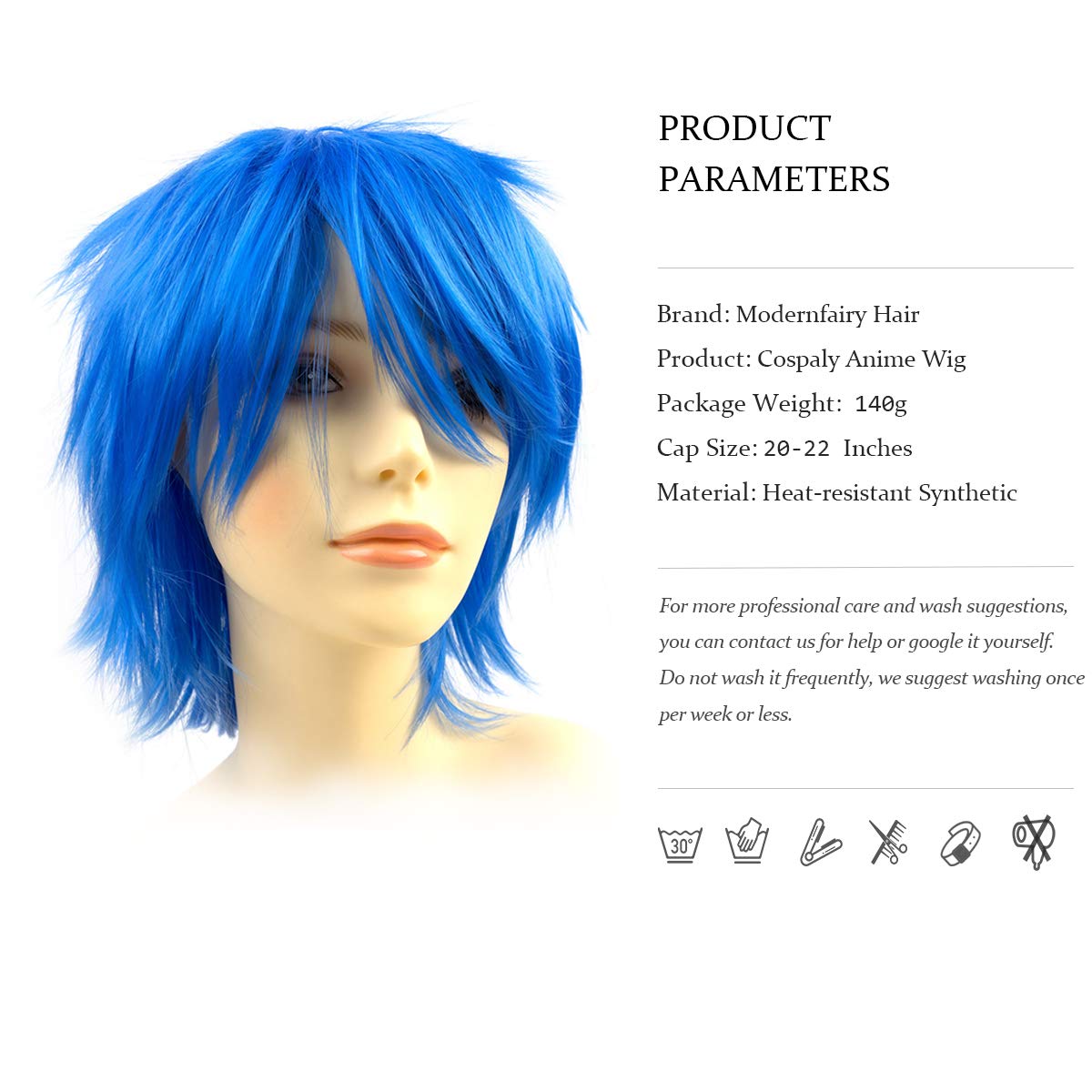 Modernfairy Anime Halloween Wig Blue for Cosplay Party, Synthetic Layered Short Hair Wigs with Bangs, Pastel Wigs for Women Men