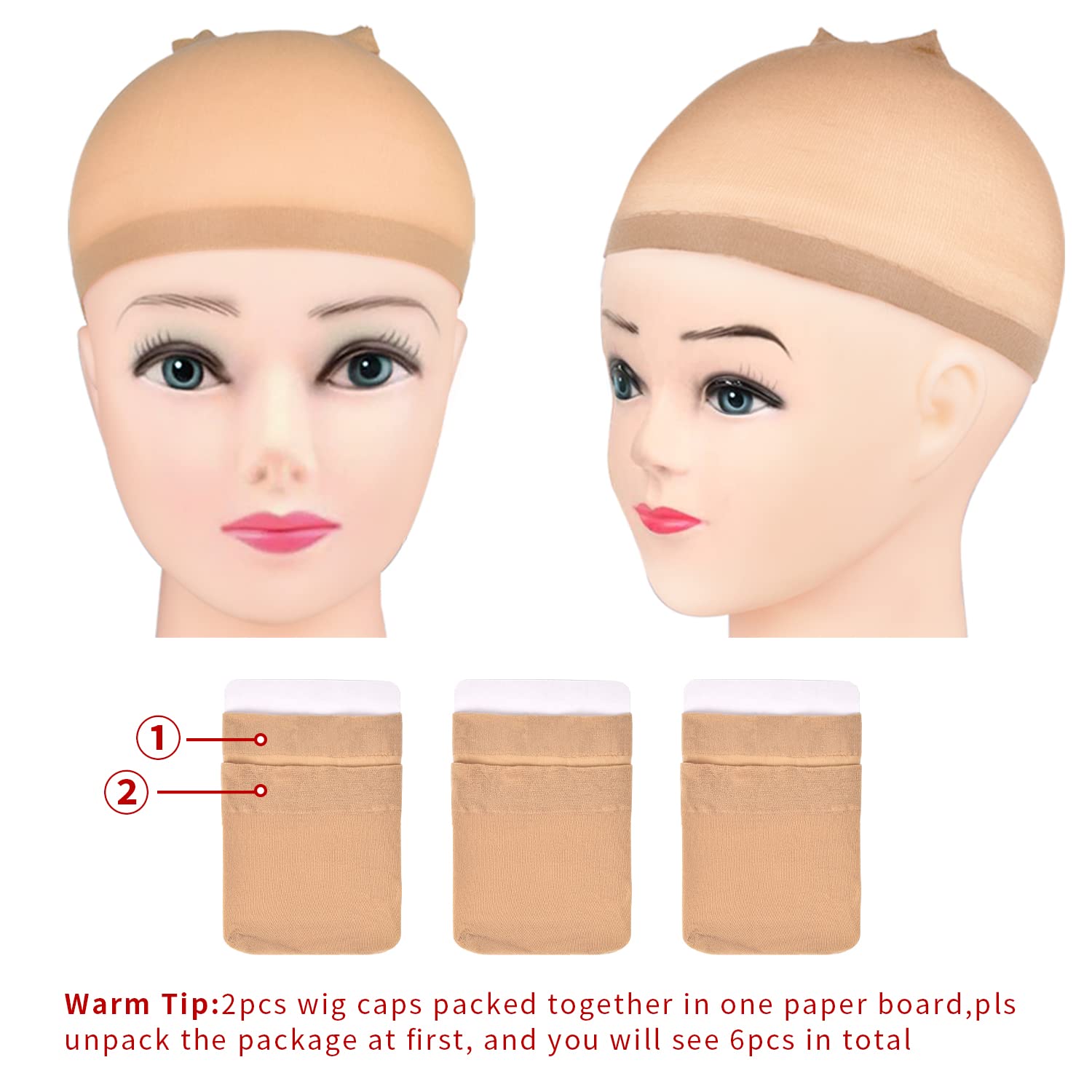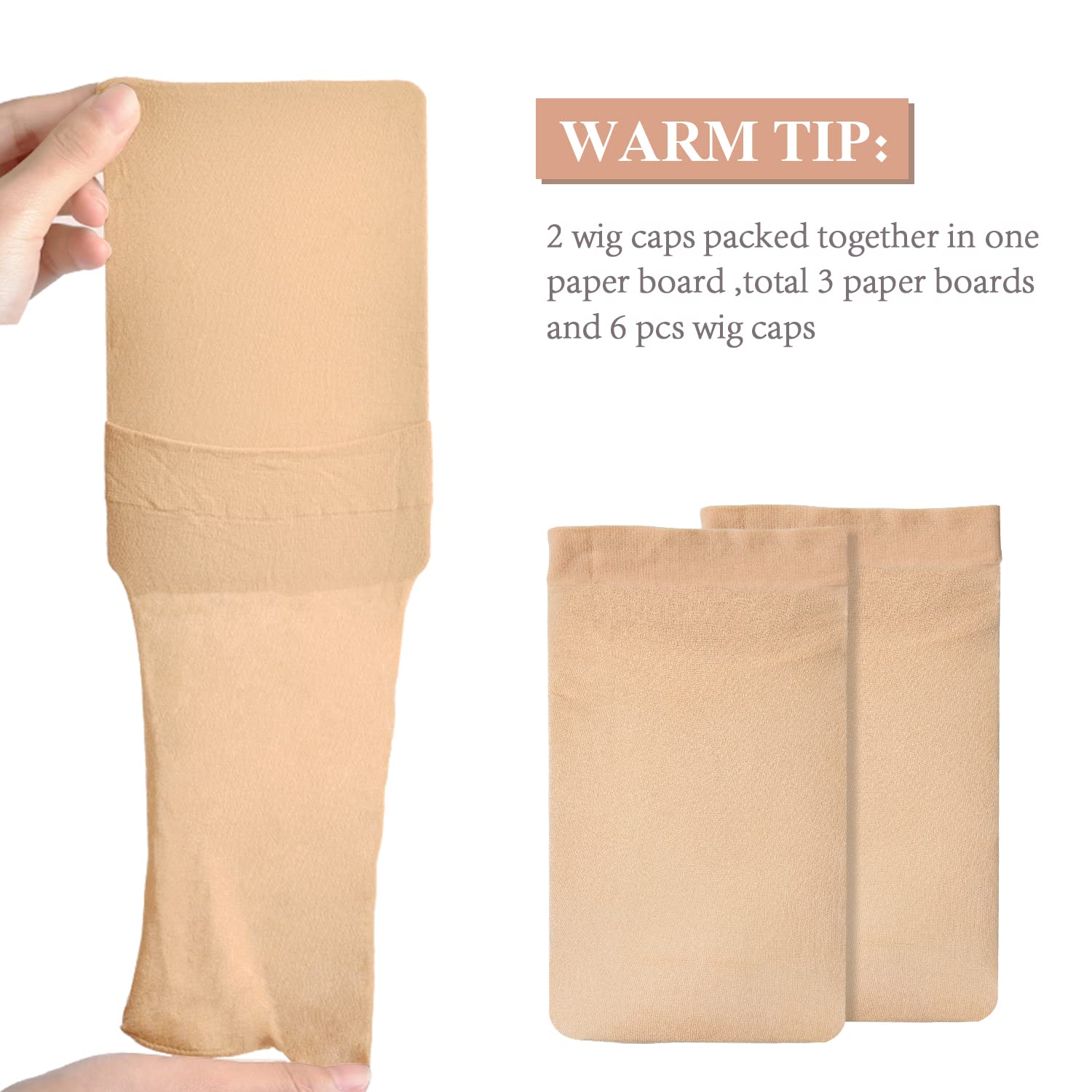 MORGLES Wig Cap, 6 Pcs Stretchy Nylon Wig Caps Stocking Wig Caps for Women, Light Brown