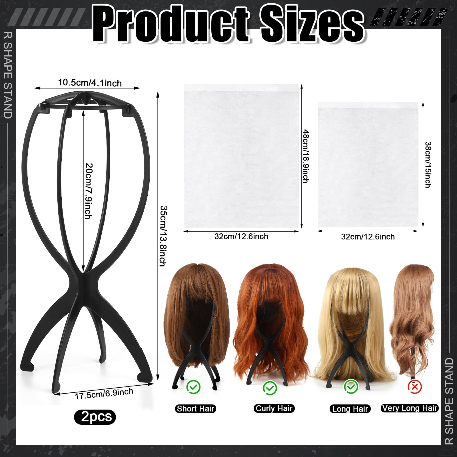 - Wig Stand Set: Our wig head stand set include 2 pack black wig stands (length of 13.8 inches) and 2pcs non-woven wig dust bags ( length of 15 inches and 18.9 inches), 2 sizes to protect long and short hair