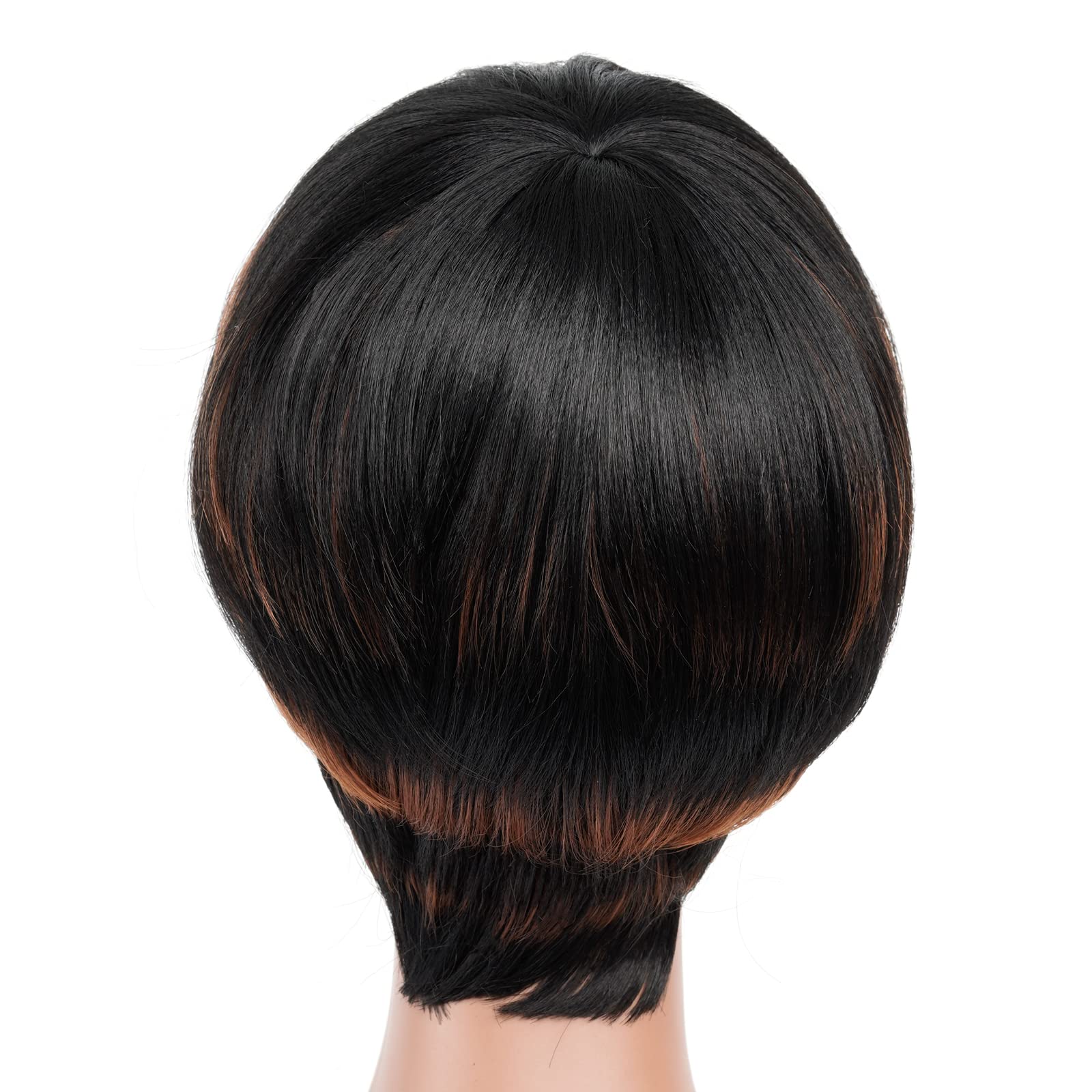 ToyoTress Short Pixie Cut Wigs - 4 Inch Black Mix Brown Short Layered Wig For Black Women, Light Yaki Straight Daily Costume Synthetic Hair Wigs Heat Resistant (4 Inch, SP1B/30)