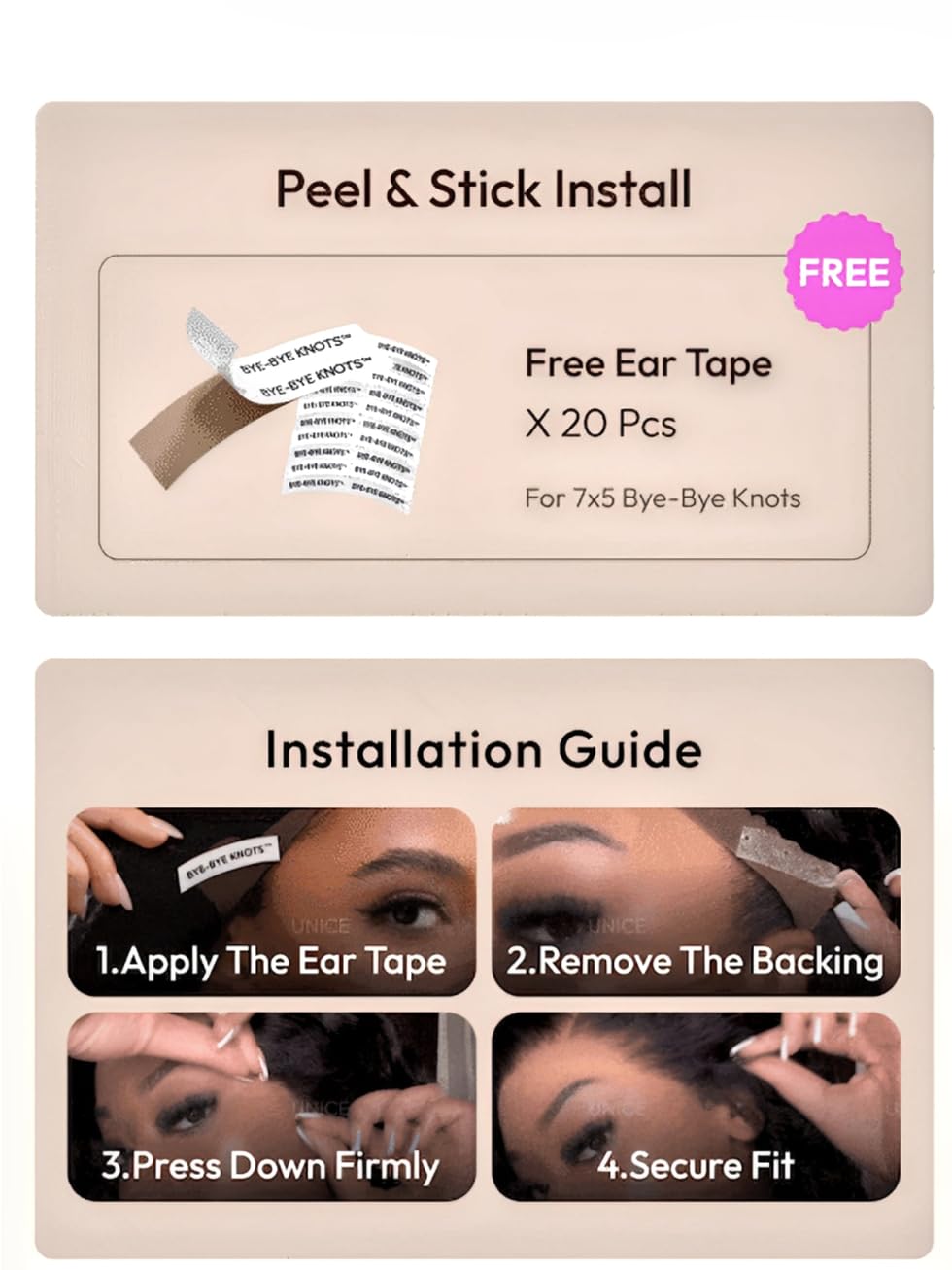 - 5.Bye bye knots Glueless Wig Cap: UNICE 7x5 bye bye knots glueless wigs upgrade elastic breathable cap 3 combs and elastic band to ensure wig stays in place all day long (Circumference:22.5 inch) . No worry head size. No slide back