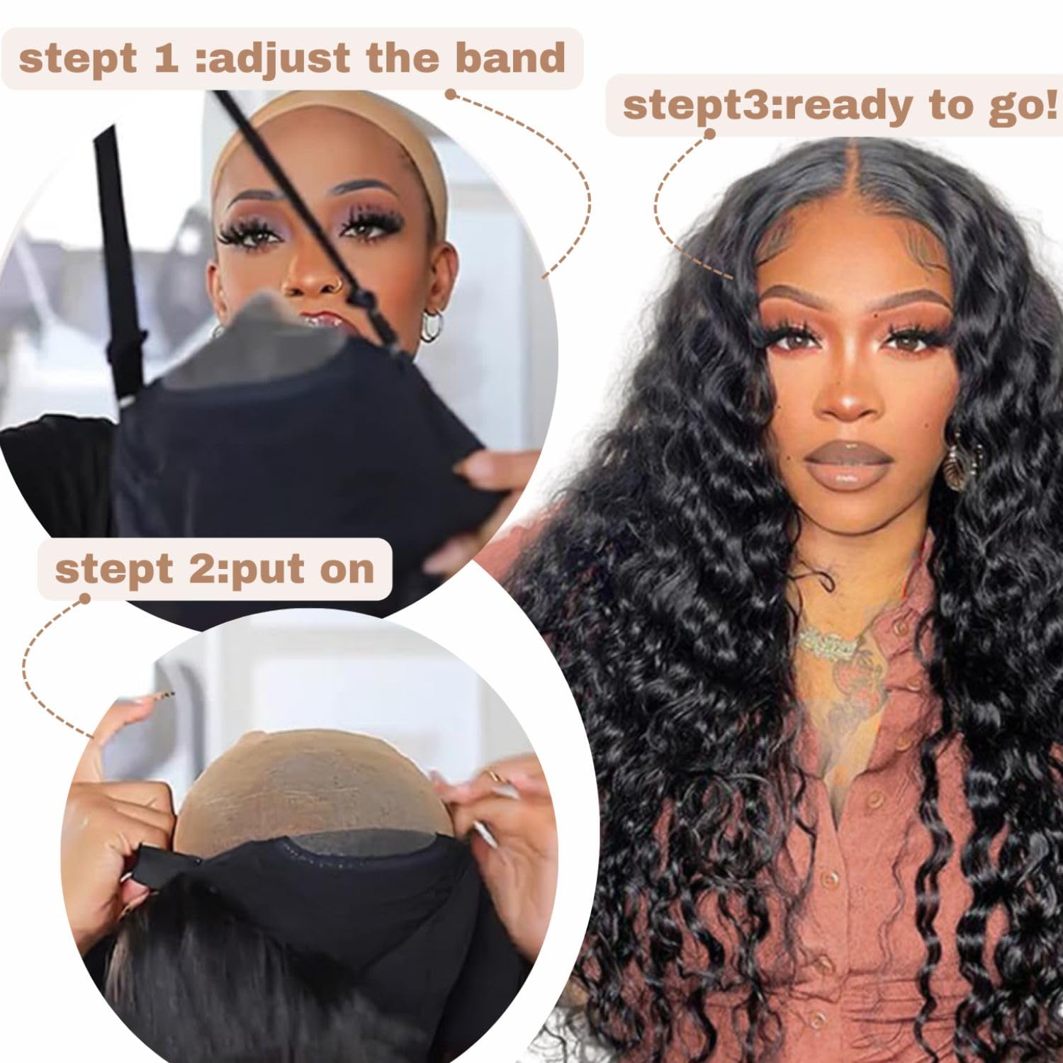 - Deep Wave Lace Front Wigs Human Hair Type: 5X5 HD lace closure wigs human hair glueless, pre plucked and pre cut, baby hair with natural hairline, medium cap size(22.5inch)with 3 combs and adjustable strap, Anti-slip rubber strips,easy to wear and install. 18-30 inch is available.