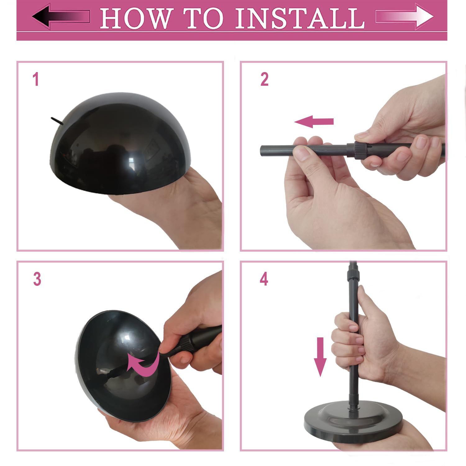 Package:Each package comes with a base, a anti-slip dome, and an adjustable rod. Simply connect the thicker end of the rod to the base and install the dome on the rod.