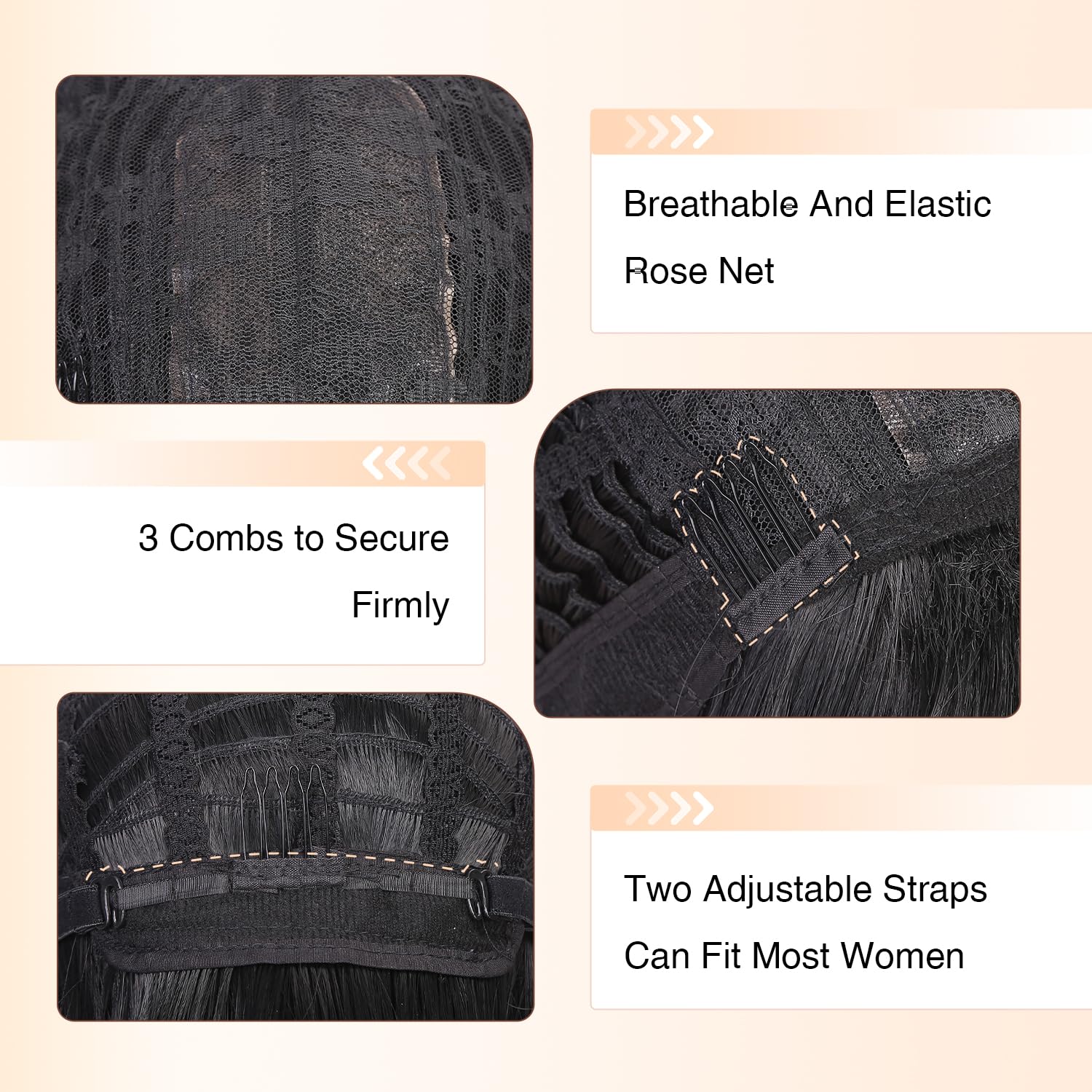 - More Realistic Hairline Long Hair: The black bangs wig is desigend with one realistic hair scalp, looks quite natural from all angles. Bangs Hair will be better to modify women’s faces.Trim Freely to make everything Perfect!