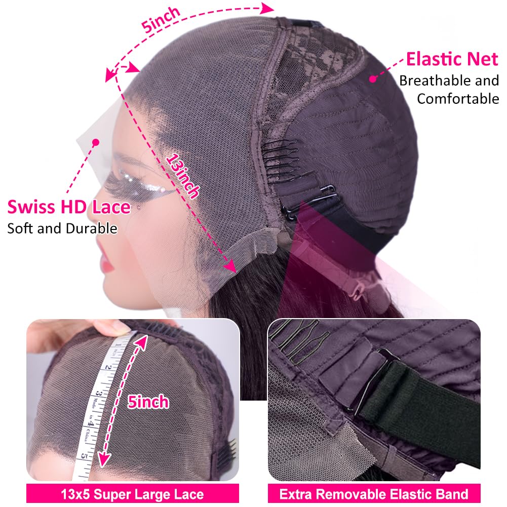 - Hd Lace Wigs Size: 13x5 HD Transparent Swiss Lace Frontal Wigs with Baby Hair, Hand-Crafted Technology, Simulated Scalp,Melt Prefectly with ALL Skin Tone, Glueless Human Hair Wigs for Women and Long Parting Space in Front,can do Middle part or Side part as you wish.