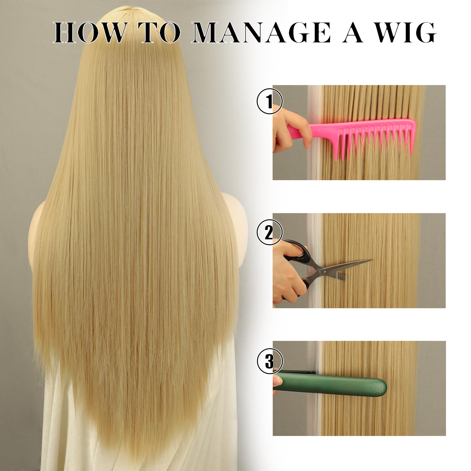 - ❤[Wig Material]:The light blonde straight wig is made of high quality heat-resistant synthetic fiber. And the soft touch is suitable for all-day to wear it. When you first receive the long wig, there may be tangles, you can spray it with a watering can and comb it, it will make the straight long wig soft again.