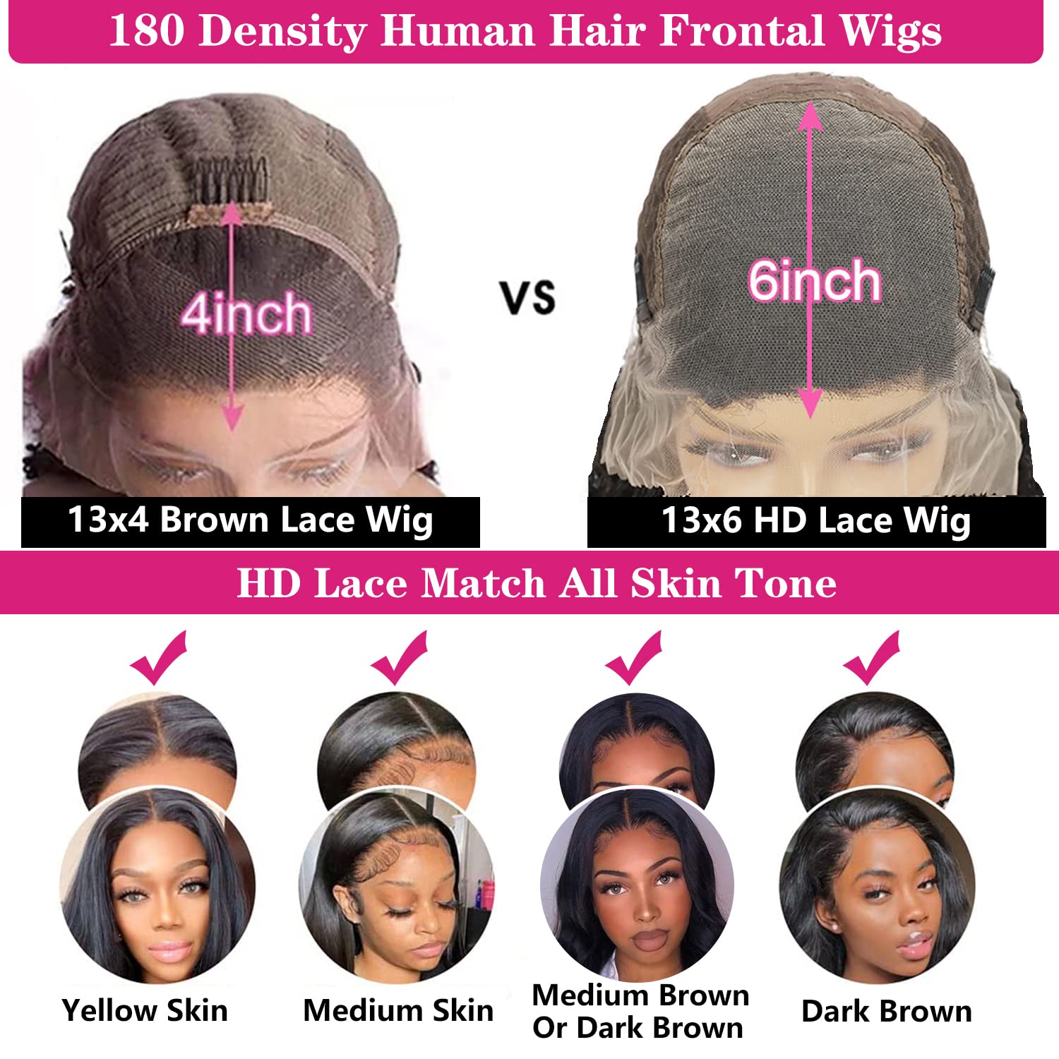 - 【Human Hair Wigs Premium Material】13x6 HD Straight Lace Front Wigs for Black Women, 180% Density Frontal Human Hair Wigs, Full And Thick. 100% Unprocessed Brazilian Virgin Human Hair. Soft and Natural, Healthy and Vibrant, No Dry End, Zero Split Ends, Comfortable Against Skin